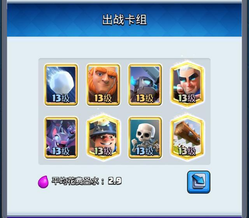 现在天梯榜中,随便翻个大佬,都有可能看到在用有小皮卡的卡组。就比如这套卡组,本身没有建筑卡牌的存在,那么在对战中肯定会遇到一些攻城卡牌,那么小皮卡绝对就是那张解场牌了。不论你是大块头的戈仑石人,还是移动速度极快的野猪骑士,遇到小皮卡只能自认倒霉了。而在进攻中,她就能利用自己的移动速度,加上滚木、大雪球等卡牌的辅助直奔塔下,砍出一刀不亏,砍出两刀就可以当本场MVP了。