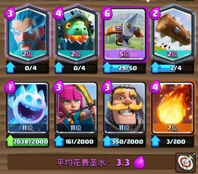 1、冰法,强势防守卡,在进攻中并不建议使用(虽然是aoe)因为滚木解地,火球解空,再者,弓箭是进攻必用,再配冰法被火球大赚