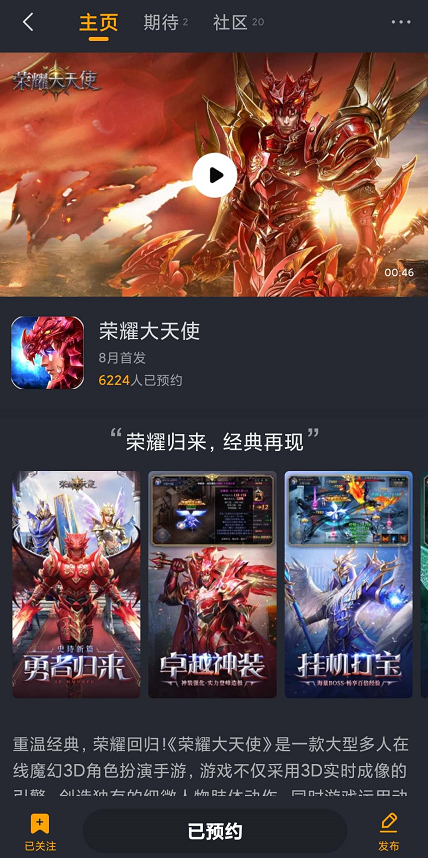 第二步:前往我们的游戏专区,点击 【预约】然后截图