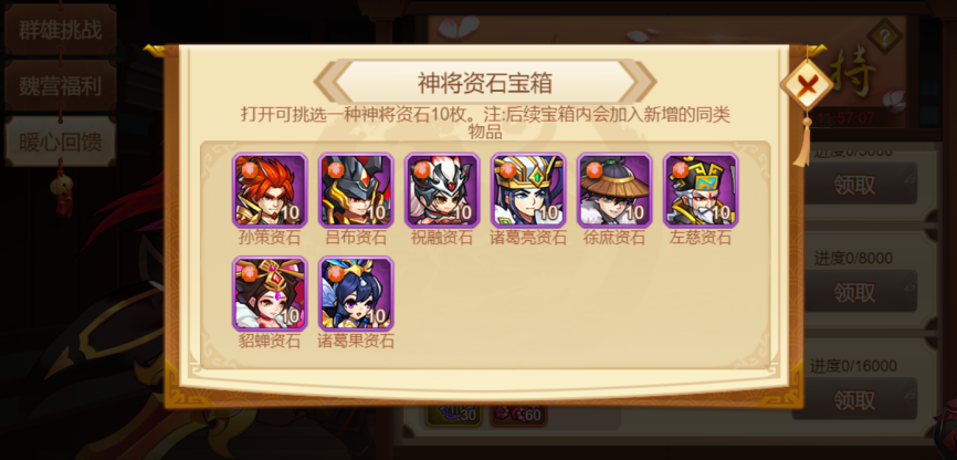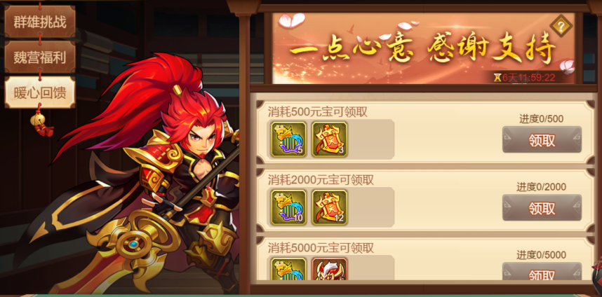 ◇开启活动:群雄挑战、魏营福利、魏营回馈(元宝消耗)