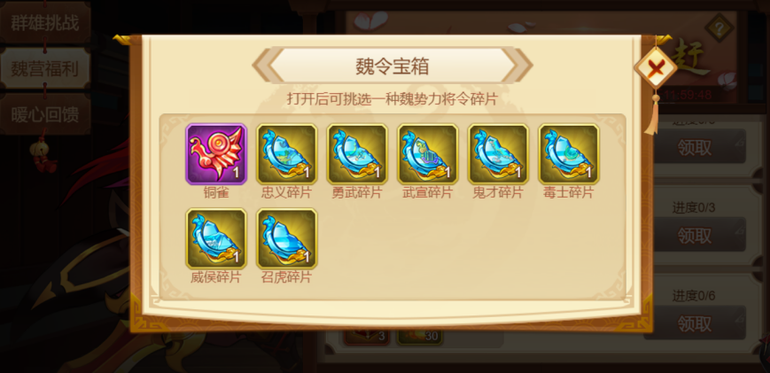 1.任务奖励会伴随阵营的开放时段来更换,请主公及时领取!