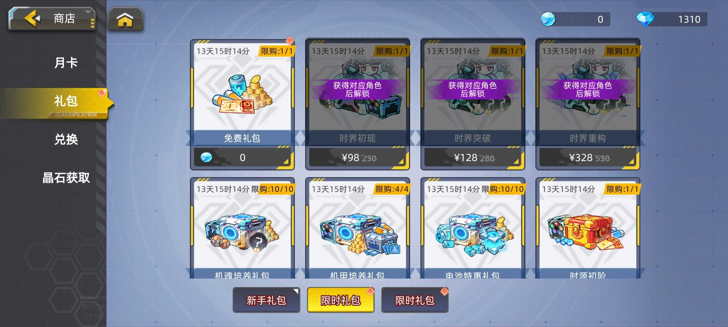 活动内容:商城限时礼包更新,上架专属接见《时源裂痕》up角色“逆行”的系列礼包,内有免费礼包哦!