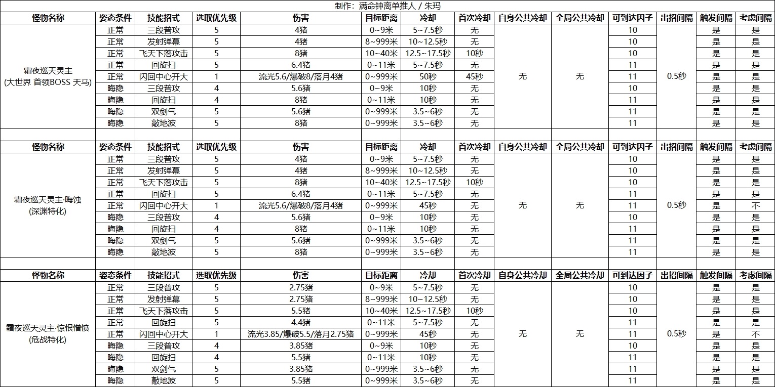 而原魔要想成功施放一个招式则必须要同时满足图表中的各种参数要求才能放,对于有能脱离地面的技能的角色来说,就可以巧妙地利用可到达因子来控制怪物出招,从我做的这一版图表中可以得知: