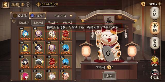御魂的获取上限迟迟没有进行调整,也是因为这并不是一件简单的事情,要想让御魂上限进行调整,那么服务器就需要扩容,这个代价还是很大的。但玩家的御魂达到上限的时候,游戏中也会提示你,御魂数量过多很会影响数据,或许会还会丢失部分数据,为了保证游戏的正常进行,希望进行御魂的整理。这个意见是一定要听的。