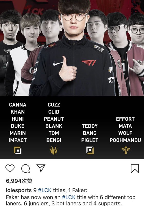 LoLEsports官方Ins:与Faker并肩作战拿下LCK冠军的队友(在LCK决赛中登场)分别有——