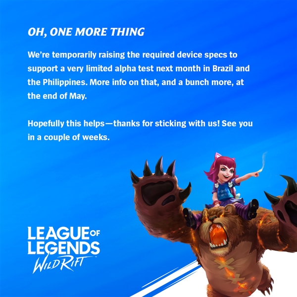 日前,英雄联盟手游官推发布最新消息,将于下个月在巴西及菲律宾开启极小规模技术测试。