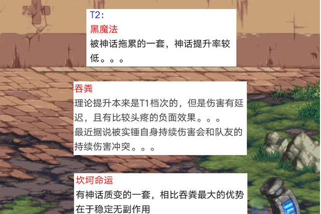 T3档位的神话太多了,涉及的范围也较广,处在尴尬的位置,玩家“爆肝”深渊好不容易出一套,却不是最好的!像CEO、打字、灵宝、呐喊和命运反抗者等等神话,都排在T3的位置,实力不是较为强劲。