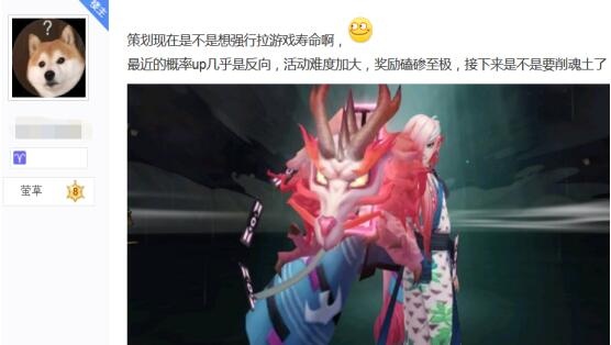 无独有偶,就在这位阴阳师吐槽自己600抽没有一个SSR式神时,也有很多玩家表示自己虽然用光了卡池的UP概率,但是出货的不是小鹿男就是青行灯一类的式神。甚至有玩家觉得,现在阴阳师的抽卡在逐渐FGO化,完全是强行拉游戏寿命的操作。加上游戏活动的难度也提高了不少,似乎有了劝退不氪金玩家的意向。并且该玩家还预测阴阳师在下版本之后,可能也会出现削弱魂土的御魂掉落率。