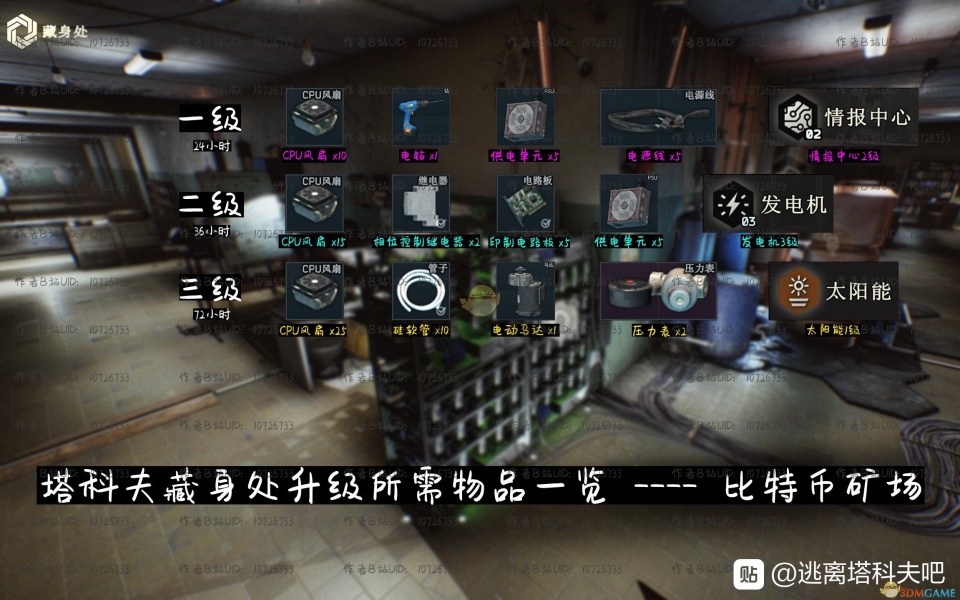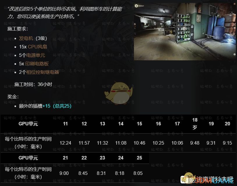 《逃离塔科夫》藏身处比特币矿场提升所需条件一览