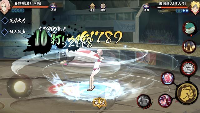 而除了上面这两个忍者以外,三个早期的泳装忍者也得到了一定程度的加强和优化,特别是泳装小樱,这个忍者的加强幅度其实非常大,除了普攻稳定性以外,两个技能的细节也得到了加强。比如一技能的套圈范围会更大,二技能的落球速度更快,还减少了技能的CD时间,无论是起手还是技能衔接都会更加方便。