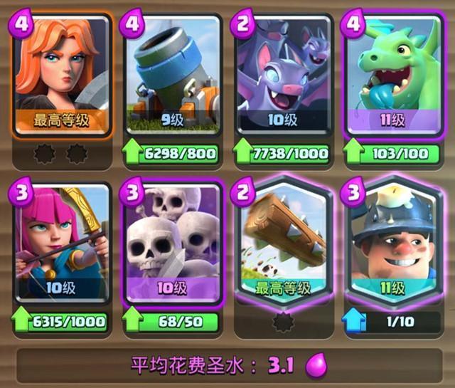 而面对对手的进攻,我们这边的卡牌也能做到很好的应对。天狗是肉盾,本身伤害并不高,只是为了掩护进击的气球兵。所以在实战中,天狗可以交给飞龙宝宝,然后让蝙蝠和弓箭手去对付气球兵,如果对手干扰卡牌实在太多的话,迫击炮还可以当一个拉扯来使用,而剩下的像重甲亡灵、骷髅飞龙等卡牌,就让女武神去吸引目标好了。