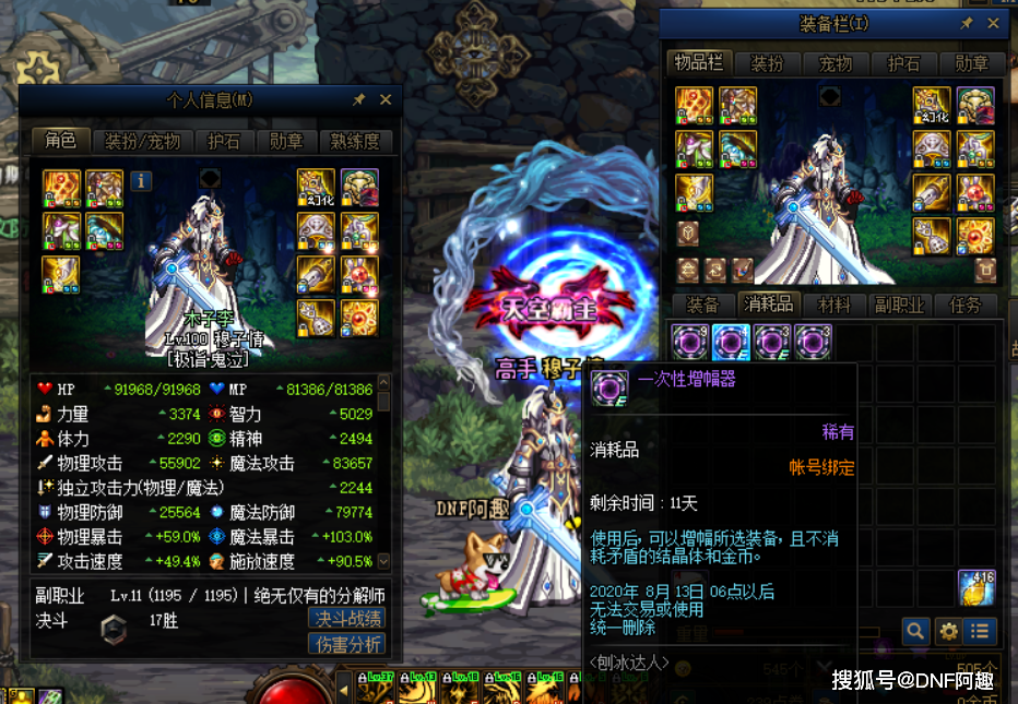 就拿阿趣的鬼泣来说,右侧装备都达成红10了,而左侧装备之前利用活动的增幅器都到了+8,没敢继续上,这次全部解锁。规划的操作流程是先利用增幅器和公会药水全部冲+10,预计可以成2件,剩余的3件中,2张+10卷确保成功,另外一件可以利用免费获取的增幅器慢慢上,这里可以利用到的东西,总结下来就三点:周常地下城、周期活动及助手活动。