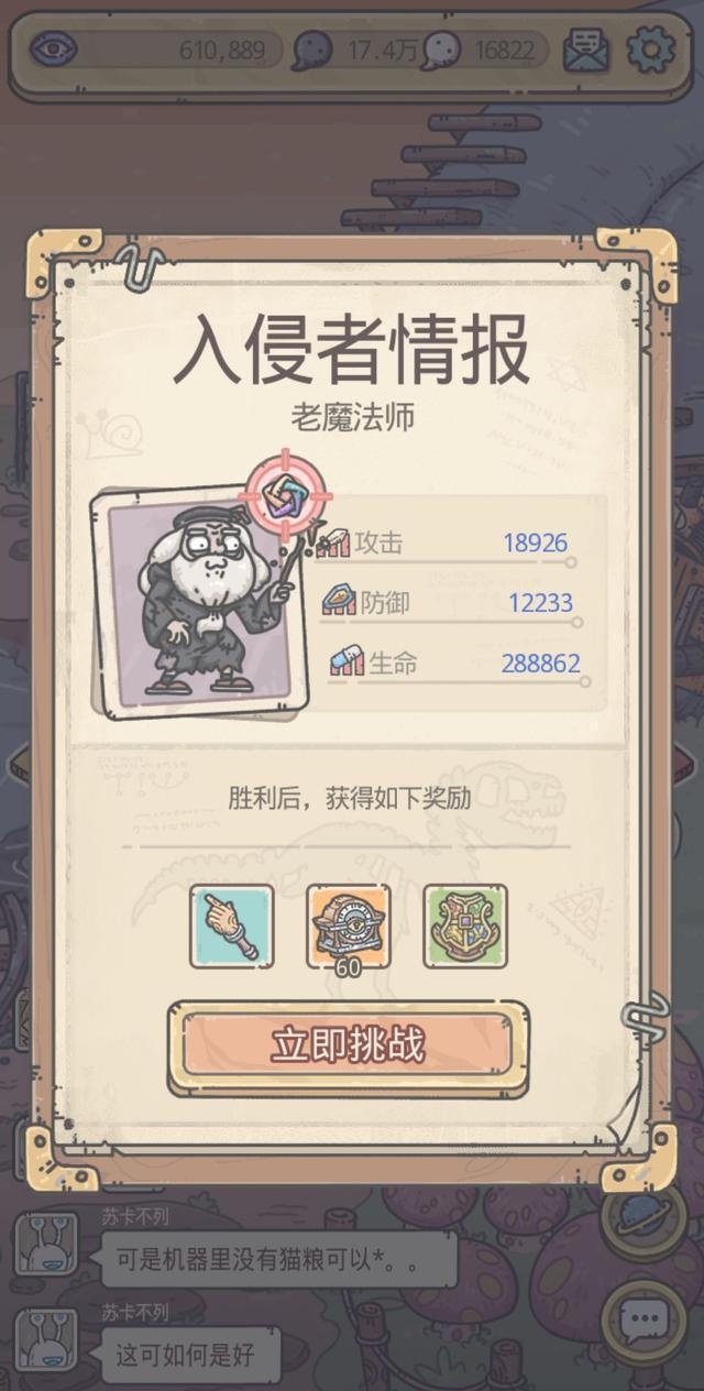老魔法师攻击1W9、防御1W2、血量将近30W,还是有一定实力的。一般来说玩家的攻击达到2W2以上就有机会过了,打败他之后可以获得一个胡桃木魔杖、一些宝箱和一个魔法学院勋章。