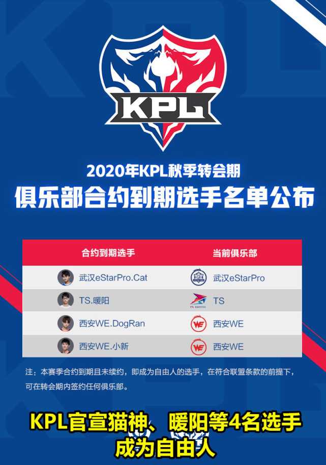 KPL官宣4名选手成自由人,暖阳走不掉,estar留不住猫神