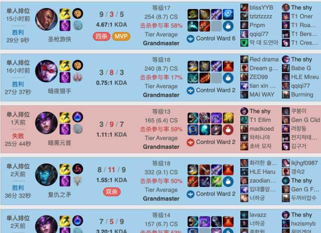Theshy韩服排位钟情长手!胜率高达七成!圣枪哥四连胜