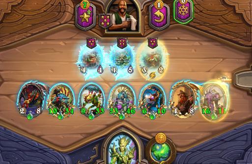 在组排中,欧穆可以在排到队友的情况下进行跳本,在稳定抓取一个随从的同时还可以及时和队友沟通调整站位来保证血量的健康。如果情况顺利我们甚至可以在8费回合怒升五本,在其他玩家还在三本回合搜卡的时候,我们就已经可以在五本回合来选择铜须或者是光牙来作为我们的启动组件了。