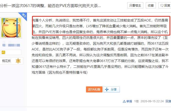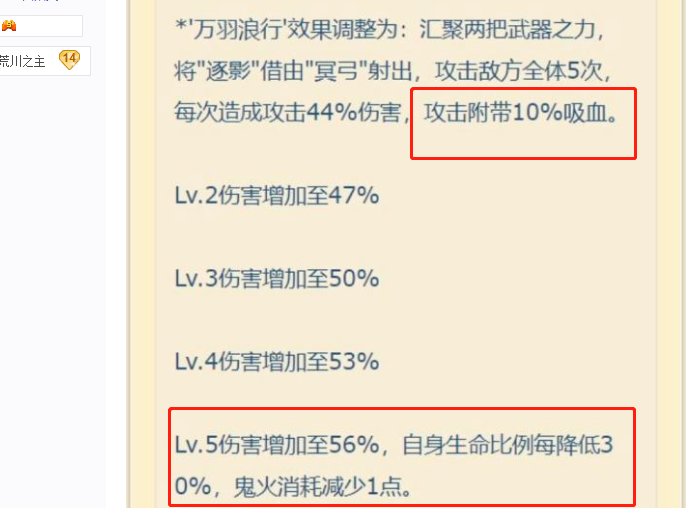 其实这波改动笔者也看得很迷,因为改动之后铃鹿御前的大招自带吸血效果,但是满级之后又描述说生命比例每降低30%鬼火消耗就减少一点,在pve中式神血量基本上都是保持在健康线以上的,再加上自带的吸血效果,所以所以这个设定差不多就废了。那这个应用场景应该就是在pep中了,但是pvp中比铃鹿御前强的式神有很多,所以定位就很尴尬。