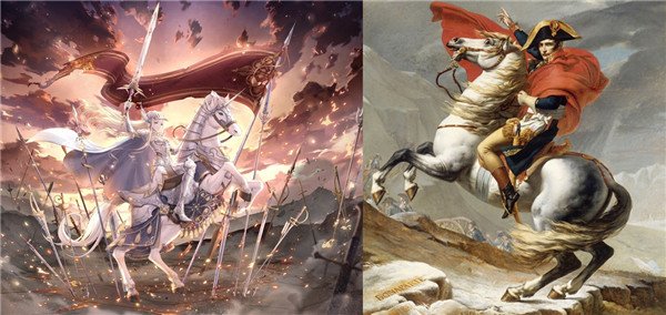 熟悉欧洲历史的小伙伴,必然都非常了解一名将拿破仑的将军。冰风战歌这一套乍一看,虽然和拿破仑没有什么关系,但是如果你看过拿破仑的经典名画《拿破仑翻越阿尔卑斯山》的话,再看这个冰风战歌就能发现有不少的相似之处了。