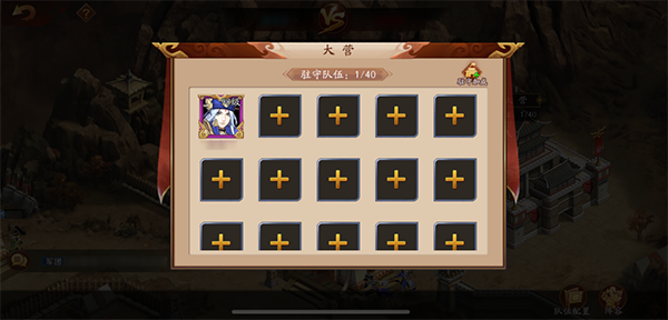 ②编组完成后,军团成员可以将3支队伍分别驻守在城门、左营、右营、中营和大营等不同据点