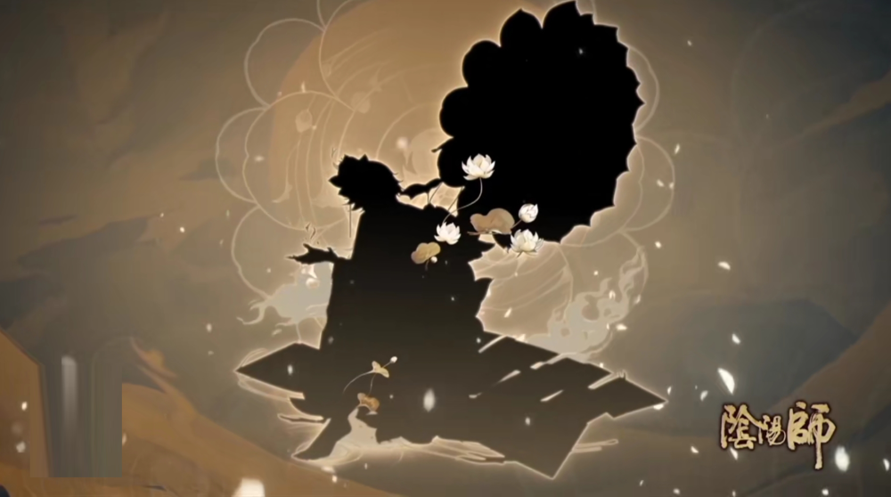剪影上面有莲花,想必大家都能想到云外镜!这个式神在春节的时候和鬼童丸的剪影一起被放出来过,当时大家都叫ta善女,现在恐怕连男女都无法分辨了!在鬼王之宴就有了些许眉目,既然是“天”,那这个剪影应该是天人的代表。天人通过云外镜监视着晴明一行人的行踪!云外镜有一句台词“我们始终只是工具”印证了这一点!