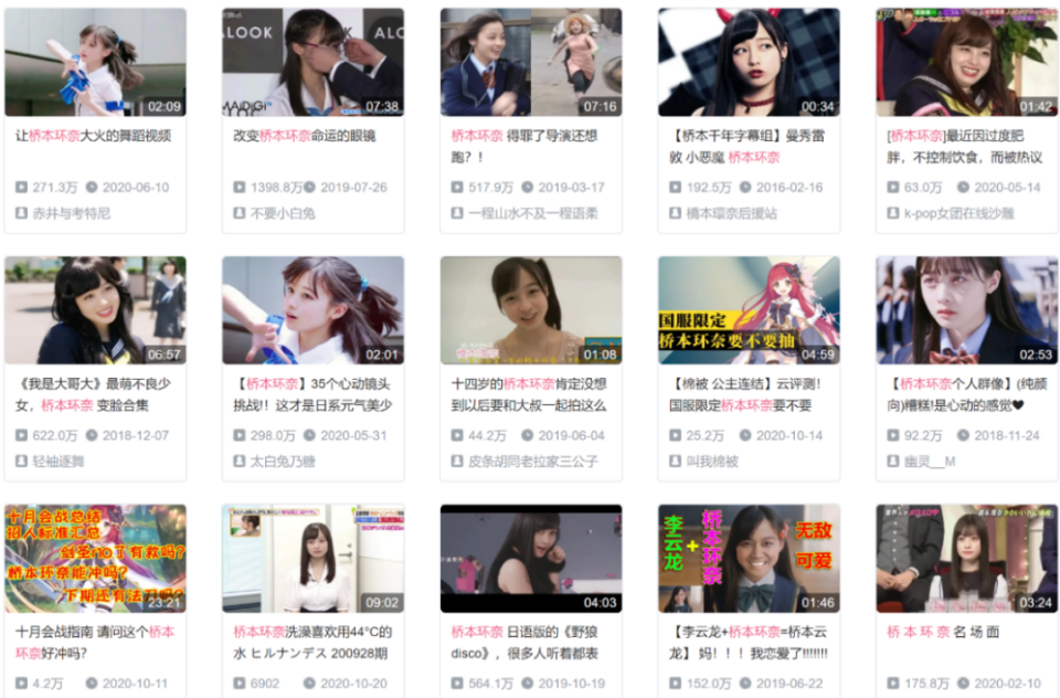 从某种意义上而言,桥本环奈已经演变成为一种文化符号和交流暗语。在各大社交媒介平台上,“桥本环奈”四个字被演绎为“美少女”的代名词,普遍应用于各种场合。而在B站内,桥本环奈的影视作品也颇受欢迎,围绕她的作品UP主们进行了大量的诙谐解构和二次创作。