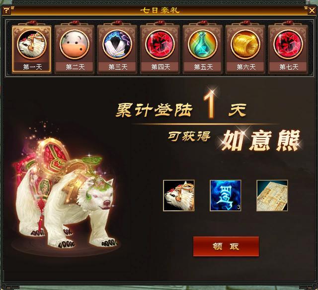 点开活动界面,看看这些多到令人眼花缭乱的福利礼包,其中有一部分是可以点击就送,但给的东西真的有点抠···期限坐骑、时装,几百元宝,3级红宝石···在这个众人皆4的年代,3级宝石除了占背包容量真的想不到还有什么用处。