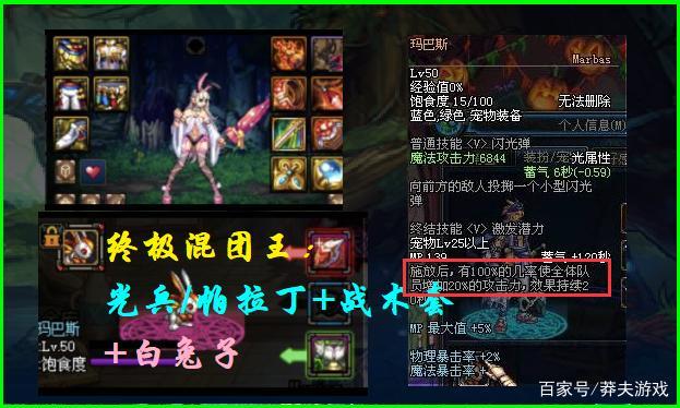 首先职业选择必须是光兵或者帕拉丁,认可度比较高;其次在装备上选择80级战术套,搭配智慧的产物“战术之王的战术指挥棒”;最后再购买一只白兔子,将其升到50级,如此,一个标准合格的“混团王”就出炉了!