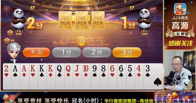 在普通的斗地主爱好者看来,玩家的输赢往往取决于开局的“运气”如何,只要分到了一手好牌,胜利就是十拿九稳,但在主播“JJ高源”的直播里你会发现,手底的牌如何并不重要,只要排兵布阵做得好,即使是“烂牌”也能逆风翻盘。