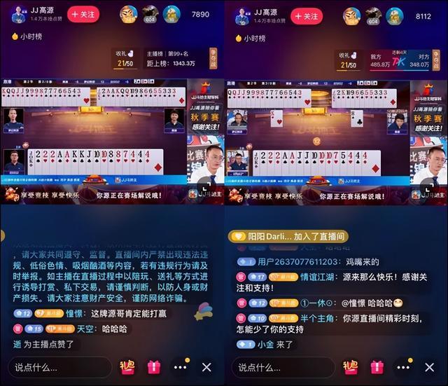 作为垂直游戏内容,斗地主这类棋牌游戏需要主播有极具特色的个人风格和优秀的内容创作实力。高源能走红,跟他专业性与趣味性兼具的直播内容分不开。