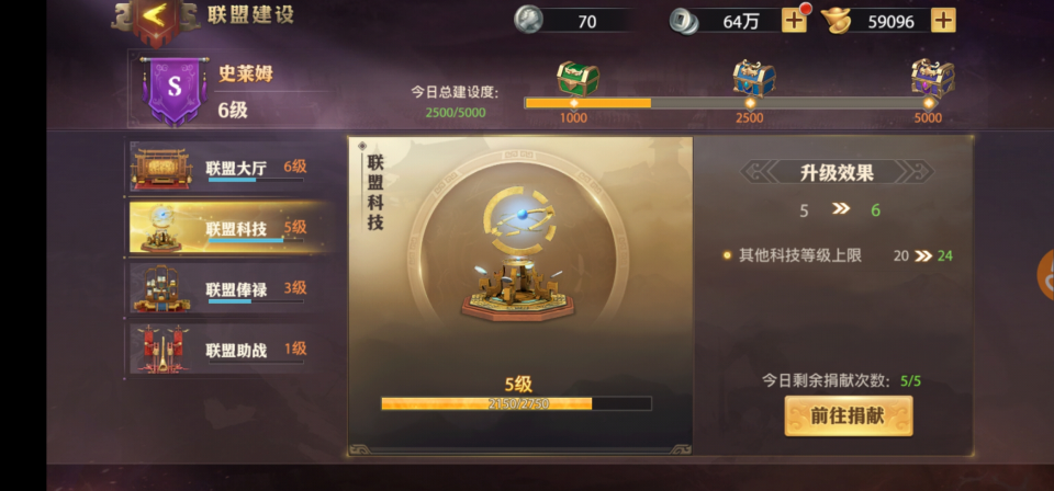 毕竟只有提高了联盟科技等级上限,才能给联盟科技提升更多等级,相应提升更高的属性与战力。