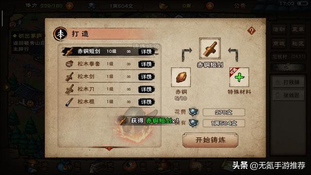 游戏内还有打造装备、采集物品(药草、木材、矿石)、探索地图等等玩法。