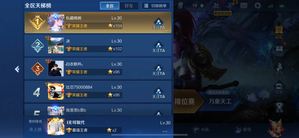王者荣耀已经上线五年多的时间,虽然版本在不停的变化,而且每个版本的强势英雄也不一样,但是玩家上分的热情一点没减少,在王者荣耀中,排位赛一直都是玩家非常喜欢的一个模式,因为它是通往巅峰赛的唯一通道,而且段位越高还可以证明自己在游戏中的实力,虽然每个玩家都想站在“最高处”,但是事不随人愿,相信大部分玩家,每个赛季的上分之路,都非常的坎坷,其实看开一点就行,毕竟是一款游戏而已,只要开心就好,能享受到游戏给我们带来的乐趣才是最重要的。