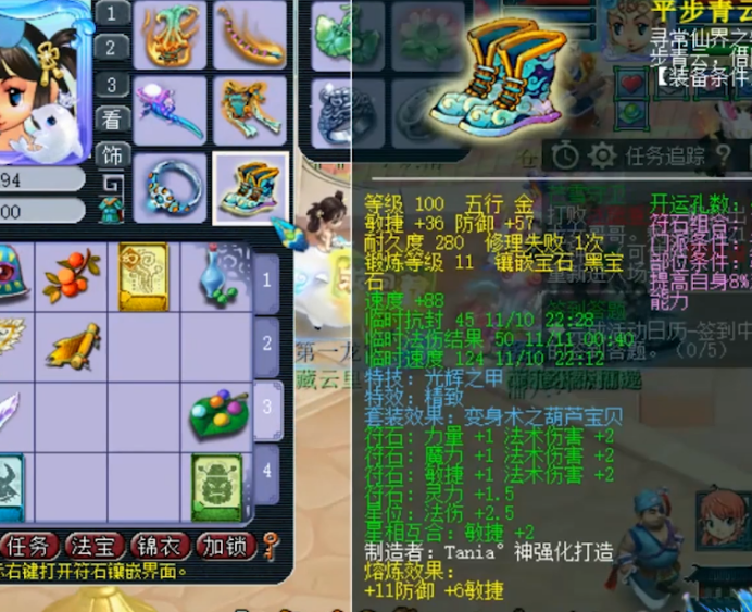 第四件,100级光辉之甲、精致的靴子,11锻黑宝石。相比较之下,靴子的属性就很一般了。相信,有了好的靴子,玩家还会更新。毕竟,100级的装备,跟130级、140级的相比较,属性上还是有差距的。而且,最要的是孔数!