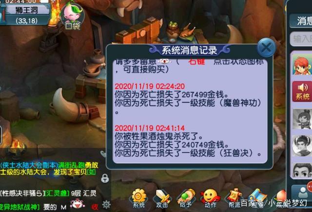 正常的情况下梦幻中的角色死亡都会损失一定量的经验和当前携带梦幻币的10%,某些特殊的副本任务死亡惩罚会被降低。上面的这位玩家的死亡损失比较特殊,因为他的角色死亡的时候损失了一级师门技能,这是因为这位玩家死亡的时候角色身上的经验不多,在这样的情况下就会降低角色最高师门技能的一级师门技能。等级越高的玩家经历这样的失败惩罚越严重。所以大家最好还是别把身上的经验清的特别空。