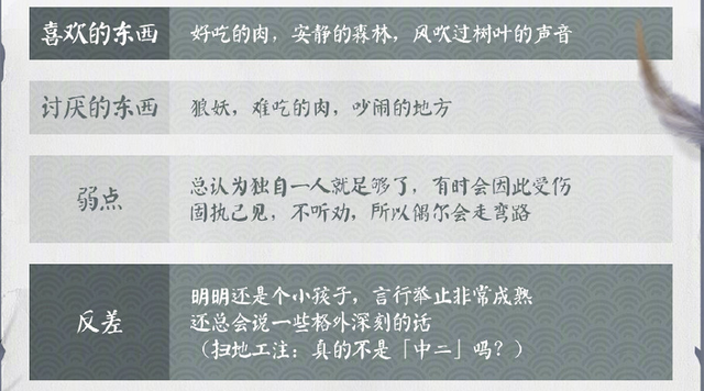 式神们的档案中埋藏了很多的信息,有的信息虽然在发布的时候看不明白,但是等到新式神出道的时候,再回过头来看,就会发现很多的彩蛋,这也算是策划们的一点小心思吧。在初翎山风的档案推出以后,这算是坐实了"小矮子"的身份。