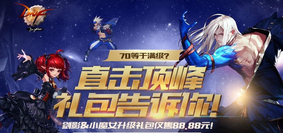 1.新职业预约活动&升级大挑战&直击巅峰礼包每次新角色或者新职业推出时都会有的一个活动,主要目的是帮助玩家们尽快让自己新建的角色成型,这次剑影和小魔女的升级活动也不例外。不过和以往不同的是,这次除了之前的升级活动之外,商城还上架了两个新职业的后升级礼包,可以让玩家们直接升到95级,但是要注意的是,这个礼包职业70级以上才可以用哦。