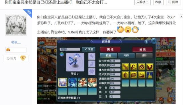 玩家自述找主播雪无打过3次数,第一次是一只7技能的须弥胚子,打到6红后就成品了。有了第一次的成功,就出现了第二次用一只9技能须弥蝴蝶去找他打书,不过须弥真言被不幸打掉了。而第三次,就是这只8技能的月魅了,花费掉5.8亿游戏币还剩下一本蓝书,玩家表示非常伤心,花了5000块钱还没打成。小编认为,打书这东西运气成分较高,既然选择找别人帮忙上书,那定然得想好结果。而且,6亿游戏币打书自己来他不香吗!