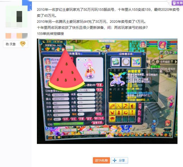 2010年另一名腾讯土豪玩DNF充了30万,到2020年的时候卖了1万。
