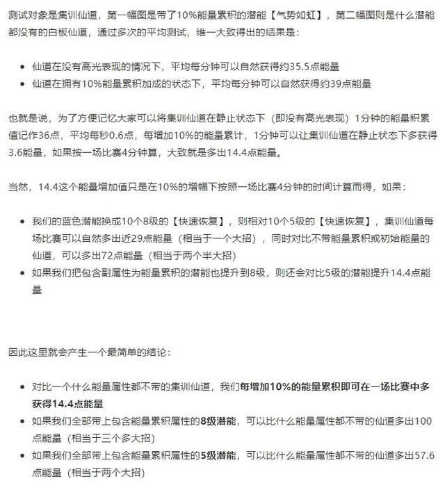 其余如能量累积速度的提升结论是没有问题的,大家可以参考之前文章中的部分结论