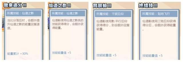 集训仙道这位纯RMB球员就有4个在能量获取方面的辅助属性,其中不仅包含了比分落后时的能量累积速度+30%,同时还包含了用不同的技能得分可以得到的额外能量加成。