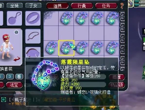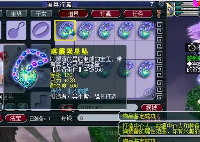 真正让玩家血赚的是这件装备,初始灵力228的160级项链装备,附加永不磨损特效,不多说,5位数随便卖!