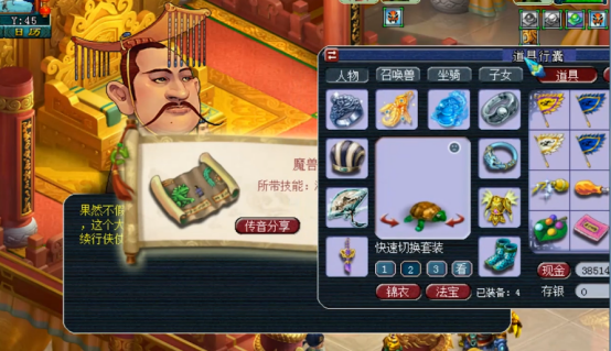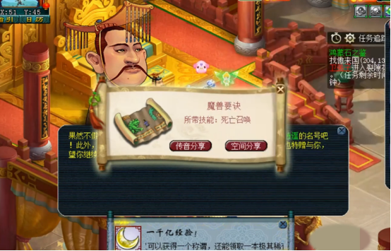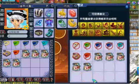 现在,游戏中想要获得特殊技能兽诀,比如:力劈华山、浮云神马……等等,有两种渠道。一是:当人物总经验达到1000亿的时候,领取的兽诀奖励。二是:集齐495个神兜兜,到长安天台袁天罡处,用神兜兜兑换。