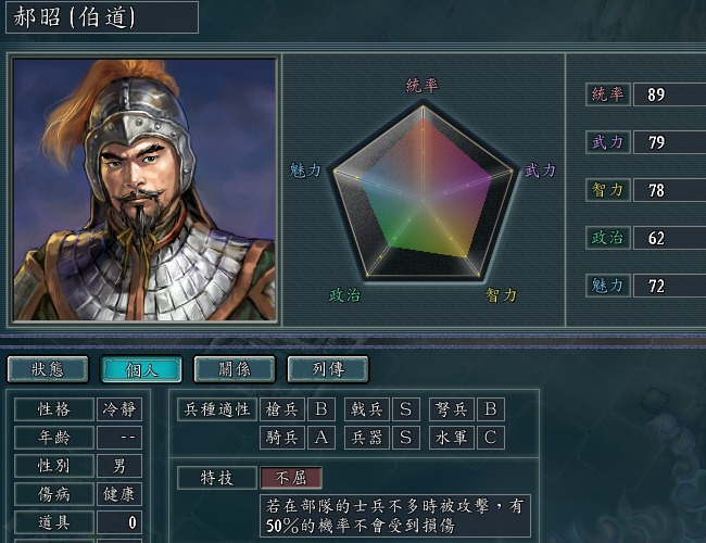 这个类型兵种最恶心的就是皮糙肉厚,攻击力虽然不是很强力,但是“苟活”绝对一流。特别是加上“不屈”这个特技,完全就是恶心人。众所周知,不屈的特效是让部队士兵不多时受到攻击,有50%的几率不会受到伤害。因此对于前期在小势力发展的玩家,没有啥高攻击力的武将,基本都会被折磨而死。