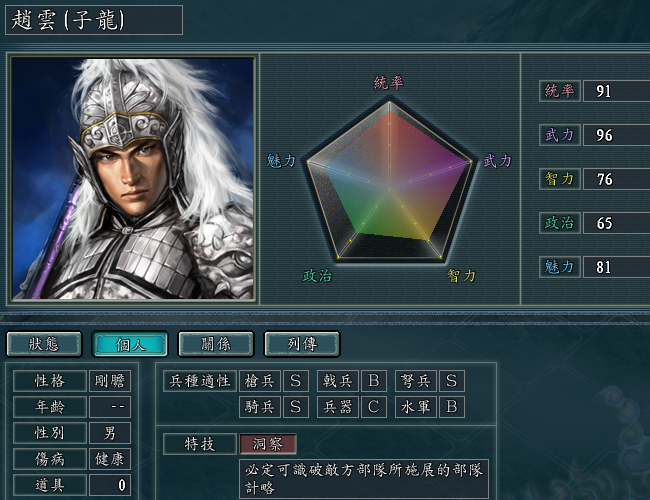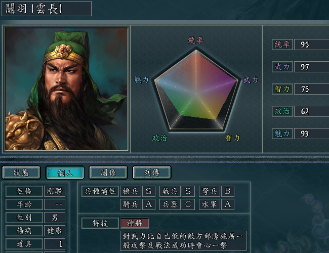 这种武将没有别的,就是自带暴击特别让人难受。尤其像是关羽那种武力值直接飙到97,对枪兵和戟兵的适性都在S的,基本上经常会被打出暴击。这种武将一队可以顶上好几队,而且还不怕围殴和单挑,算是非常难缠的一个兵种了。尤其是这种武将身边还往往会带一个硬控,基本上遇到几回合就会被直接带走。因此,一旦遇上,除了拿带着计谋的武将硬刚之外,也没啥特别好的办法了。