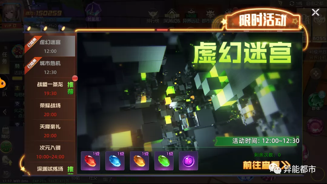 同时游戏内还会开启一些限时活动:例如虚幻迷宫、城市危机、战盟一条龙、荣耀战场等,这些都是游戏内每日限时给玩家提供的福利,记得看好时间去完成哦~