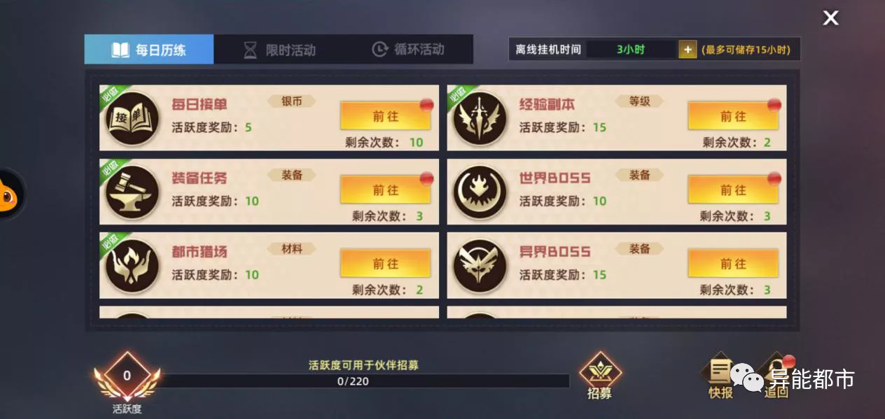 1. 每日任务:完成新手指引后,会开启每日任务,根据任务提示去完成,可以获得大量的经验。