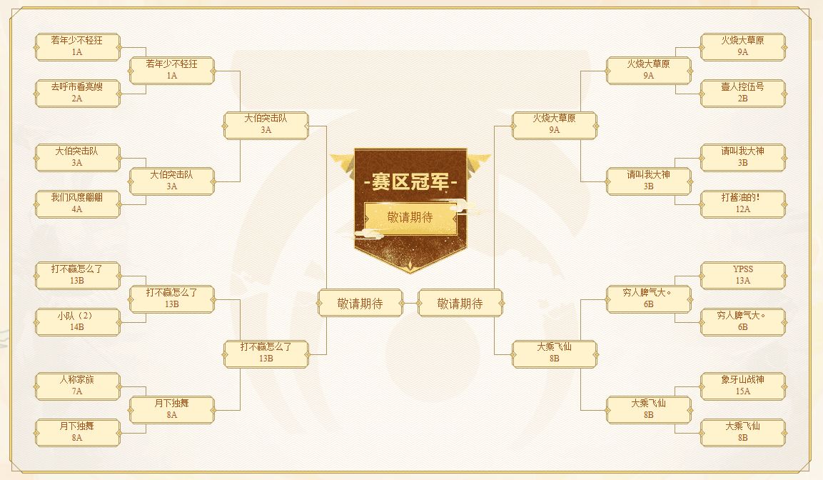 比赛首先进行的是半决赛A组的较量,由单机五开战队对阵至尊战队,展开第一轮的BO3淘汰赛。经过一番激烈战斗之后,至尊战队以2:0战绩率先夺得半决赛A组的出线资格。随之而来的便是半决赛B组的激烈角逐,由25万是我的战队和点郎当战队开启对决,最终25万是我的战队凭借实力与策略2:1顽强克敌,成功进入到朱雀赛区总冠军的最终比拼赛场。