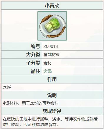 小青菜:在庭院的田地中播种【小青菜】,等到成熟后就可以收获【小青菜】;