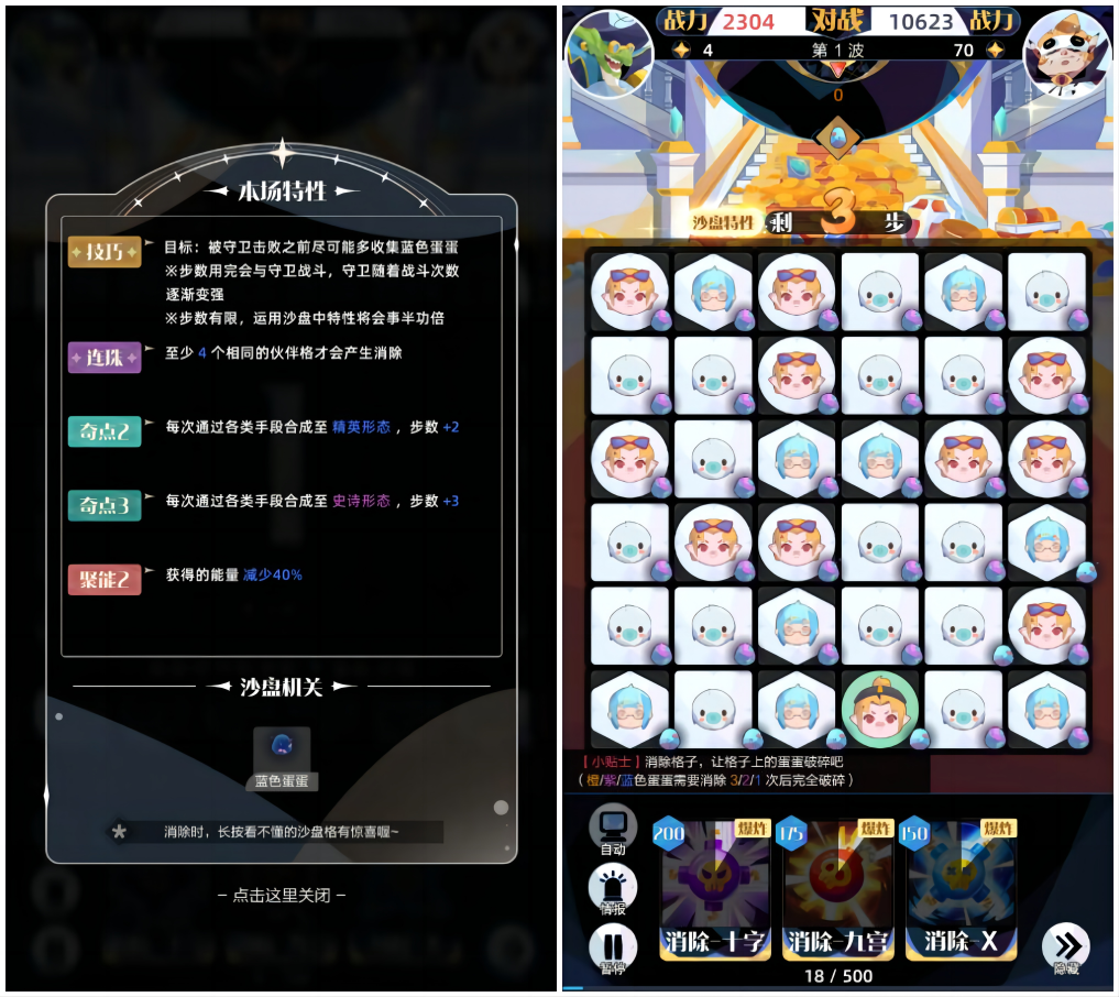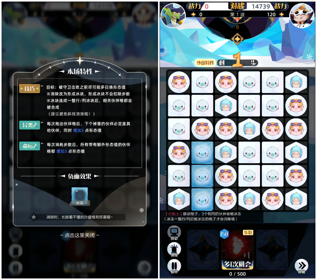 每当拖出精英形态 (及以上)的伙伴格后,随机增加3个10层冰层 (负面效果) (负面效果的格子超过沙盘格总数的3/4时则不再生成)