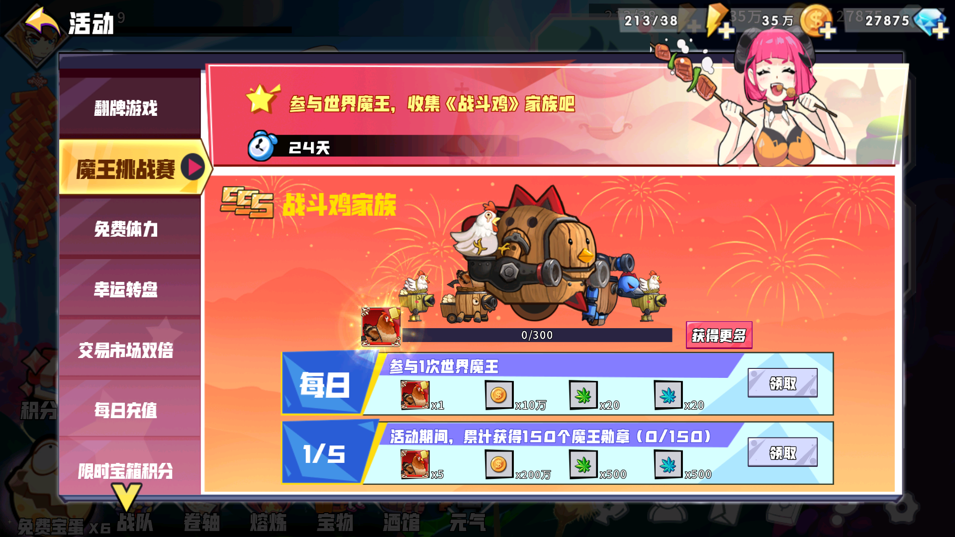 活动期间,世界魔王排行榜将加入战斗机卡片奖励,挑战世界魔王可完成活动任务,获取丰厚奖励